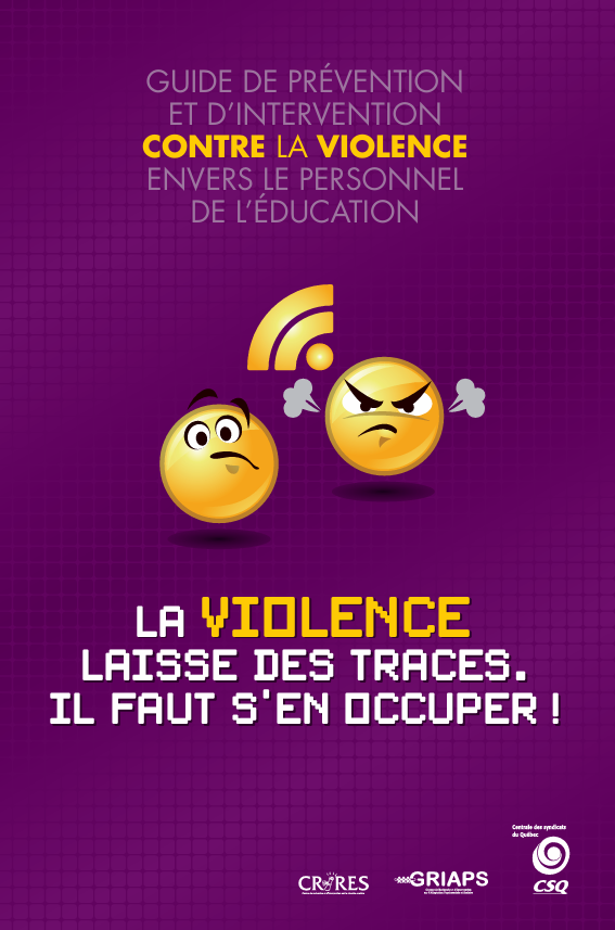 Face à cette situation toujours préoccupante, des actions se poursuivent pour la dénoncer et y faire face. Les fédérations du réseau scolaire[2] et la Centrale des syndicats du Québec (CSQ) ont réalisé un guide de prévention et d’intervention contre la violence envers le personnel de l’éducation.